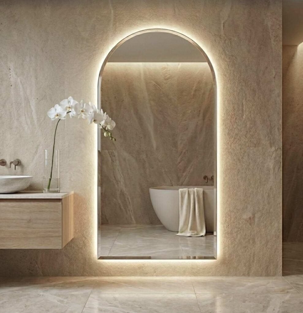 For the modern tech-savvy homeowner, the smart LED arch mirror Dubai is a game-changer. These mirrors feature touch-sensitive controls and adjustable color temperatures. A backlit arch mirror UAE creates a stunning “halo” effect on your wall, making it a favorite for master bathrooms.